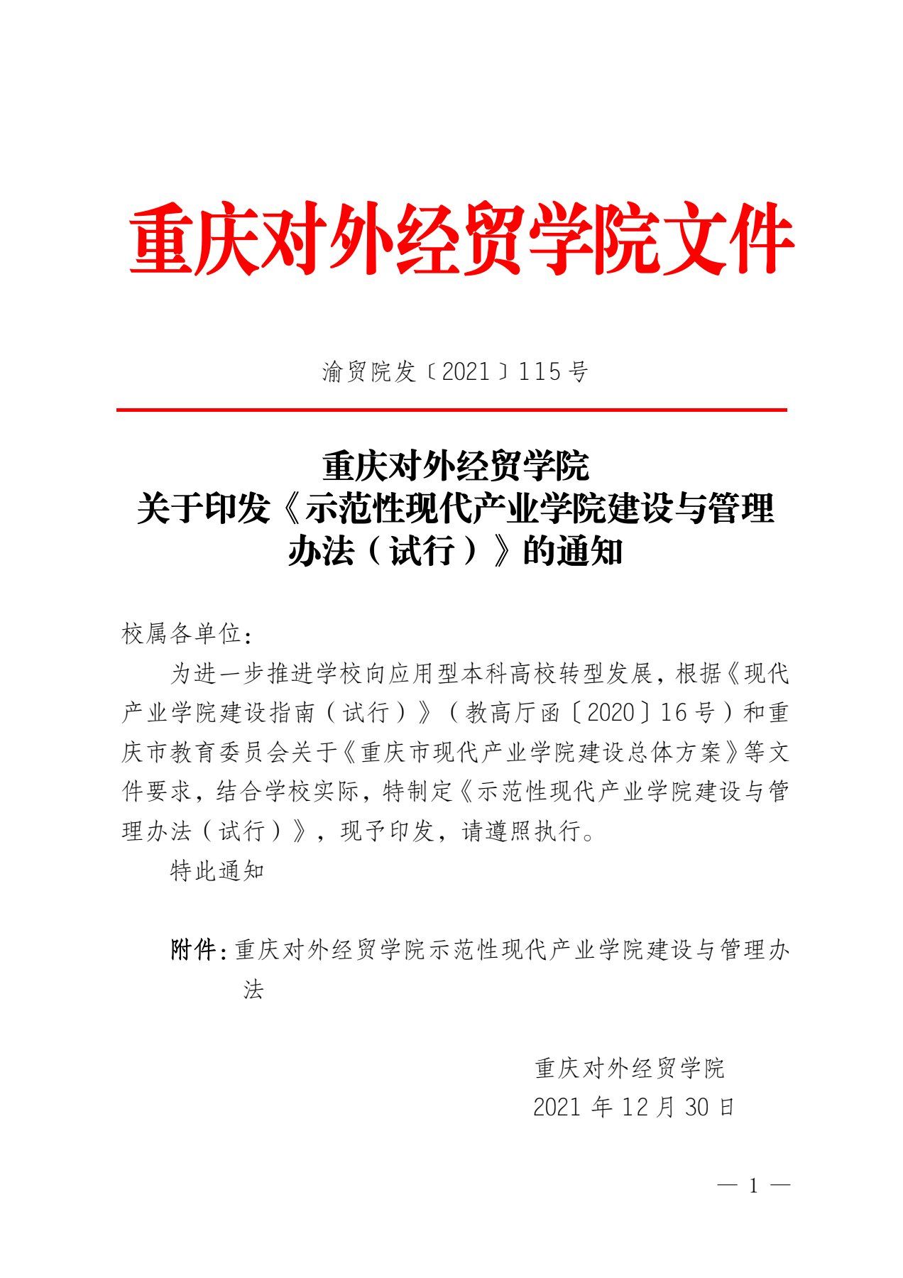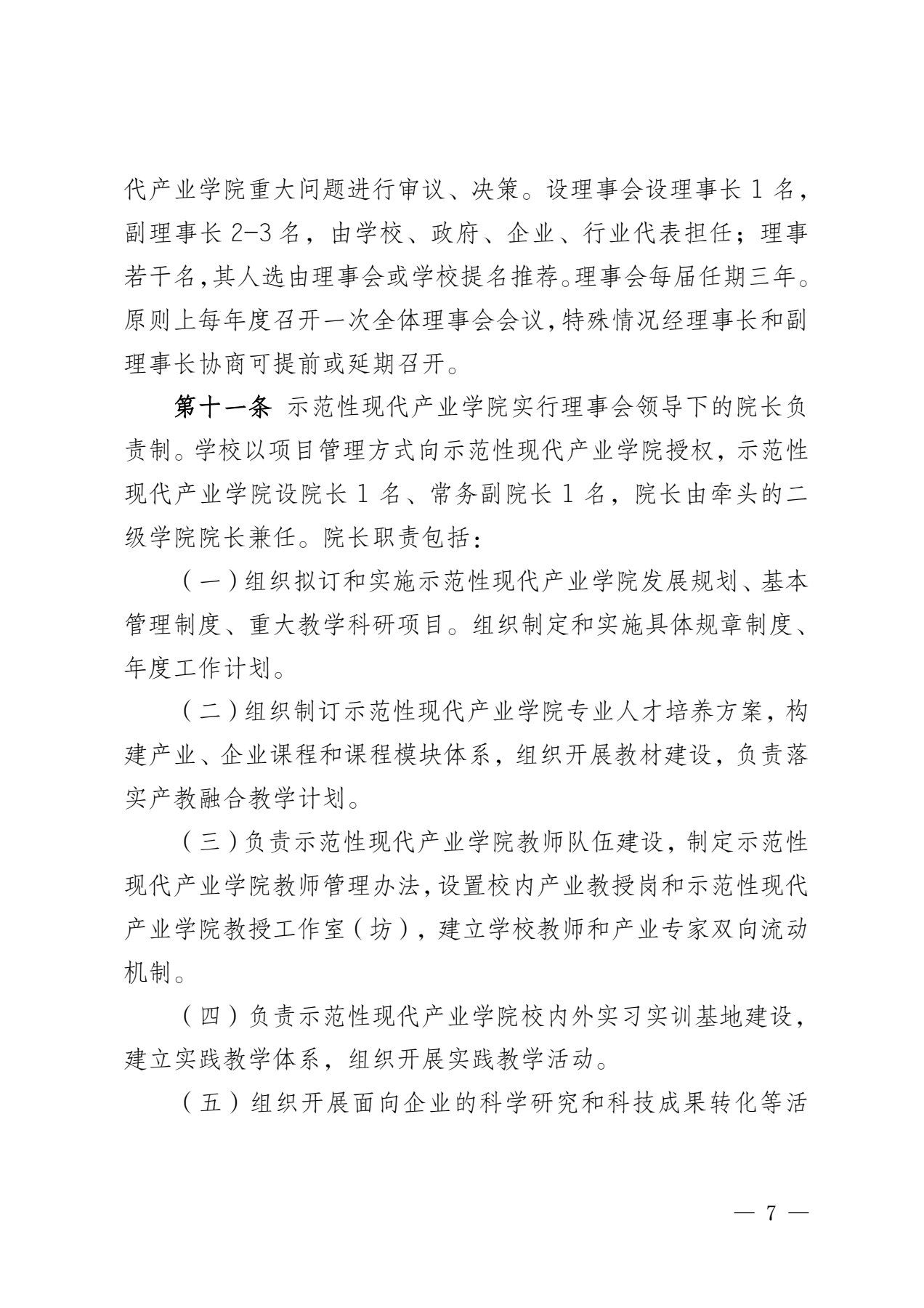 关于印发《示范性现代产业学院建设与管理 办法(试行)》的通知