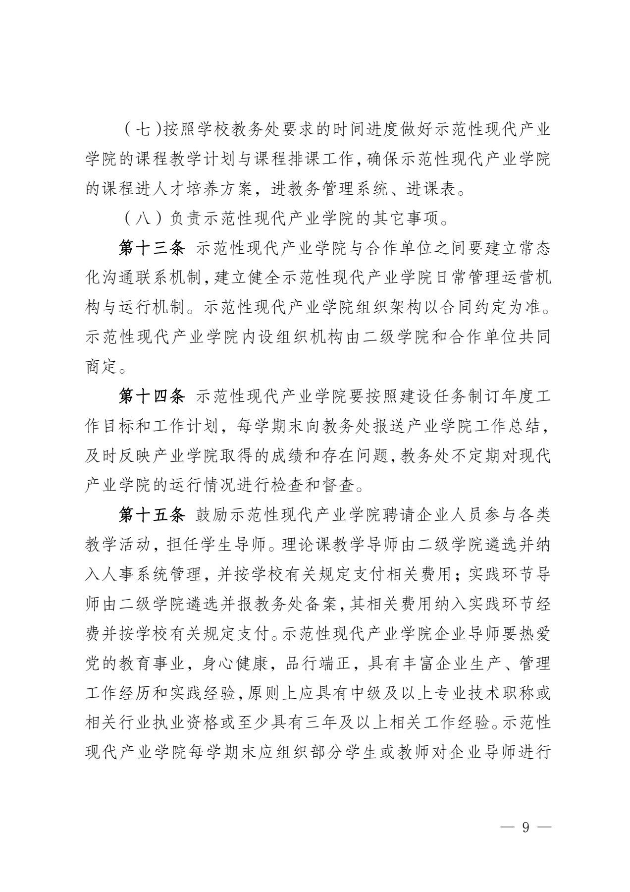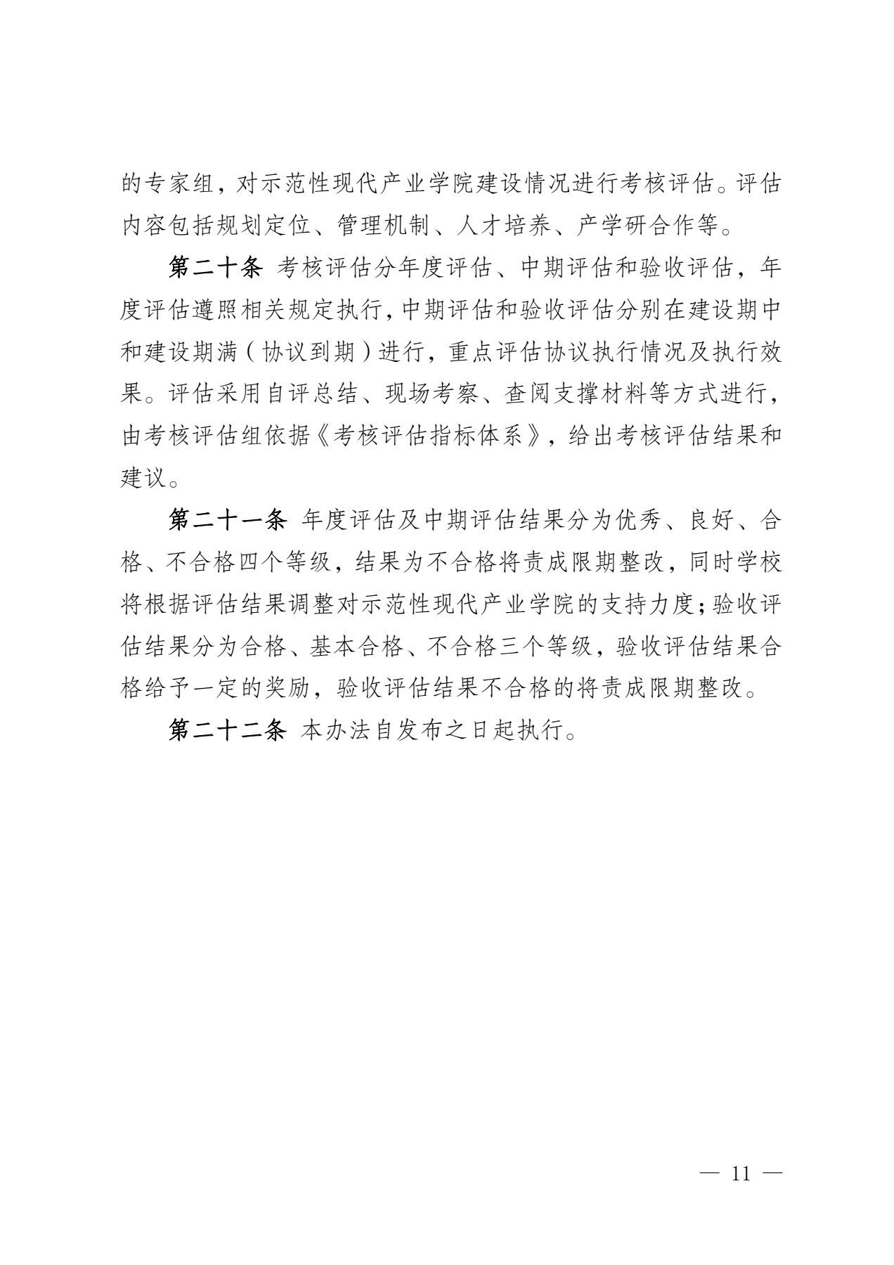 关于印发《示范性现代产业学院考核评价实施细则(试行)》的通知