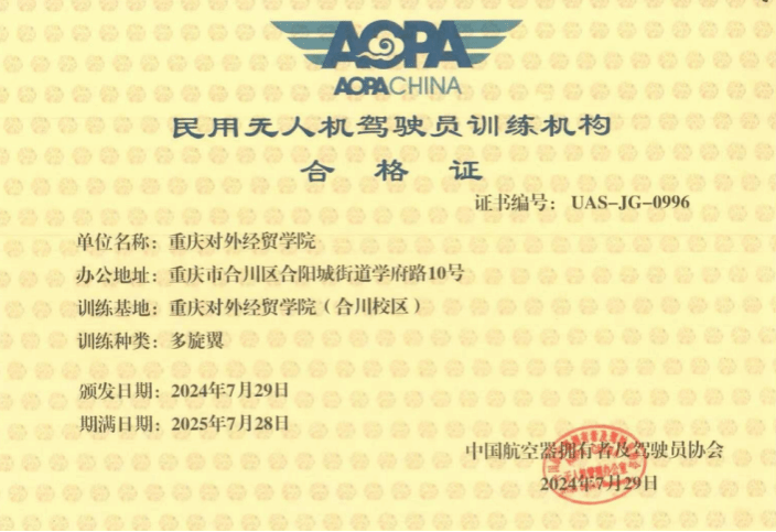 重庆对外经贸学院低空经济行业应用飞行基地,是依托于重庆对外经贸学院,与行业、企业深度合作打造的无人机行业应用服务平台。基地以服务重庆低空经济发展为导向,聚合行业创新力量,聚力低空飞行应用场景,聚焦农林植保、应急救援、物流配送、城市通勤、人才培养等重点领域,着力为企业、政府部门在低空经济场景应用方面提供项目咨询、技术支持、以及人才培训等服务。