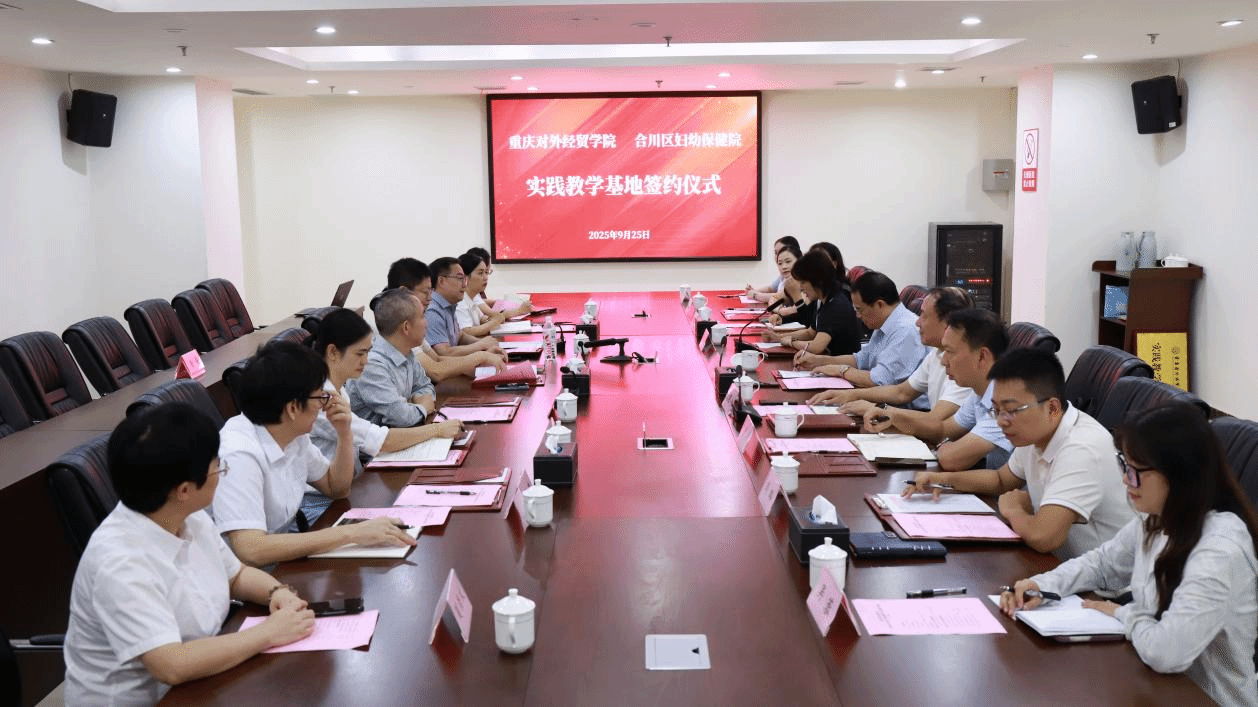 9月25日,重庆对外经贸学院与合川区妇幼保健院签订实践教学基地协议,并举行实践教学基地授牌仪式。双方以“医教协同、融合发展”开启深度合作,为区域医疗与教育提质注入新动能,签约仪式在区妇幼保健院举行。重庆对外经贸学院执行校长董志、体育与健康学院院长夏思永、教务处副处长林雪、区卫生健康委党委委员、区计生协会常务副会长唐伟、区妇幼保健院党委书记陈屹等相关领导及科室负责人出席了仪式。