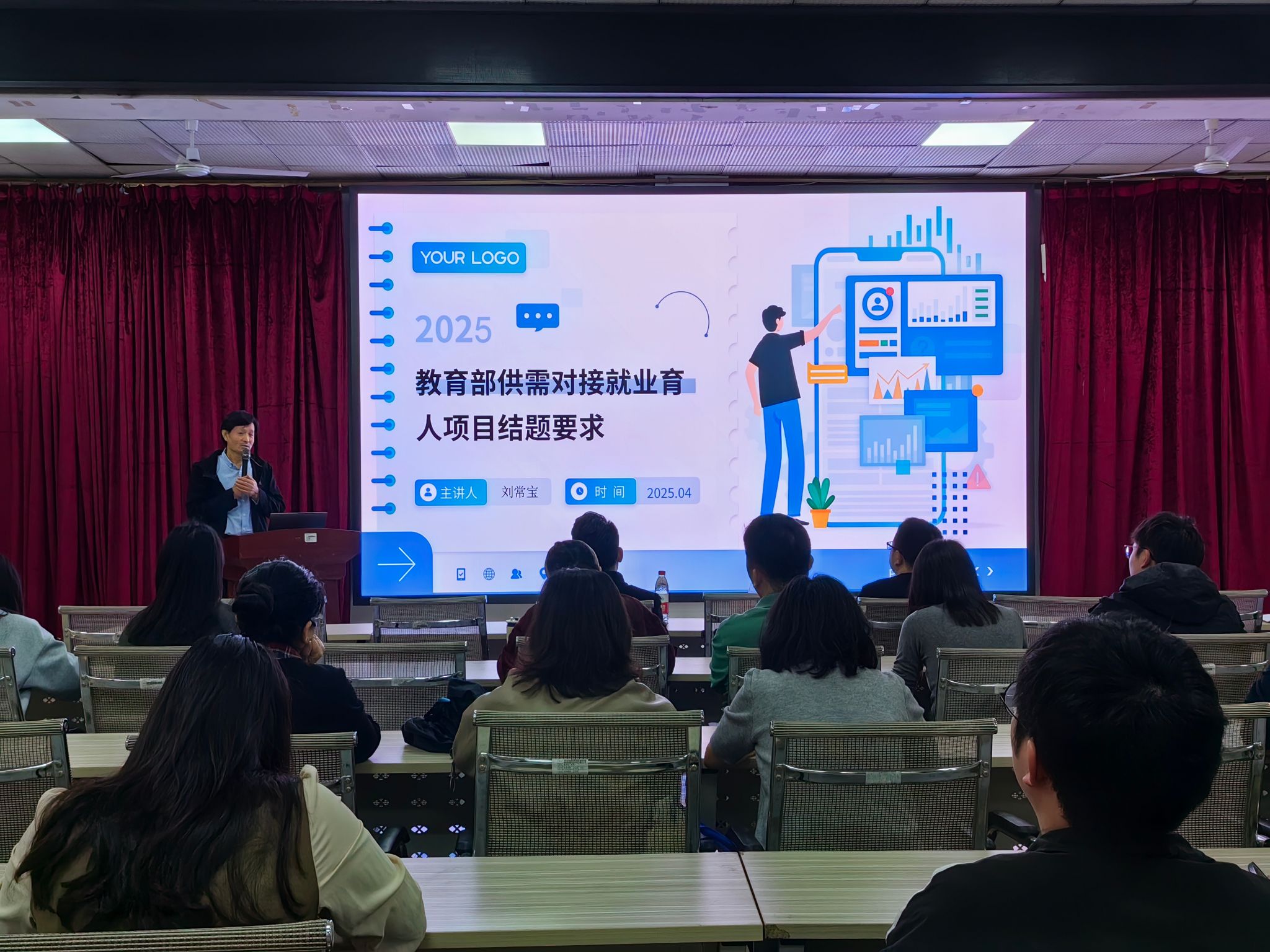会上,项目牵头部门工作人员通报了学校教育部供需对接就业育人项目的整体推进情况。2024年,我校联合全国数字教学应用产教融合共同体,精准对接行业人才需求,已成功助力近70名教师成功申报项目并通过教育部立项。项目类别涉及定向人才培养培训、人力资源提升、就业实习基地建设等方向,涵盖数字经济、人工智能与大数据、低空经济、文化旅游、大健康、人力资源、电子商务等领域,力争通过校企合作开发课程资源、共建实训基地、开展实战化教学等举措,提升了学生的岗位适配力和就业竞争力。