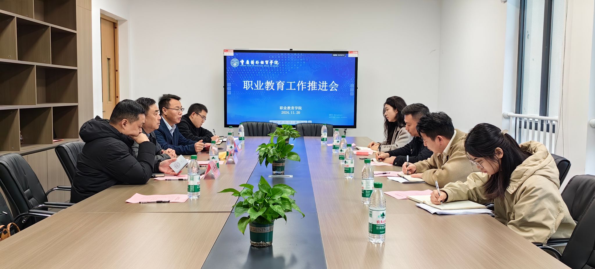 【本网讯】为深入推动学校“职普融通”办学发展,11月20日,学校召开职业教育工作推进会,副校长兼职业教育学院院长周明星、驻校理事兼职业教育学院副院长成洪波出席,会议由职业教育学院副院长张伟东主持,学院相关工作人员参加