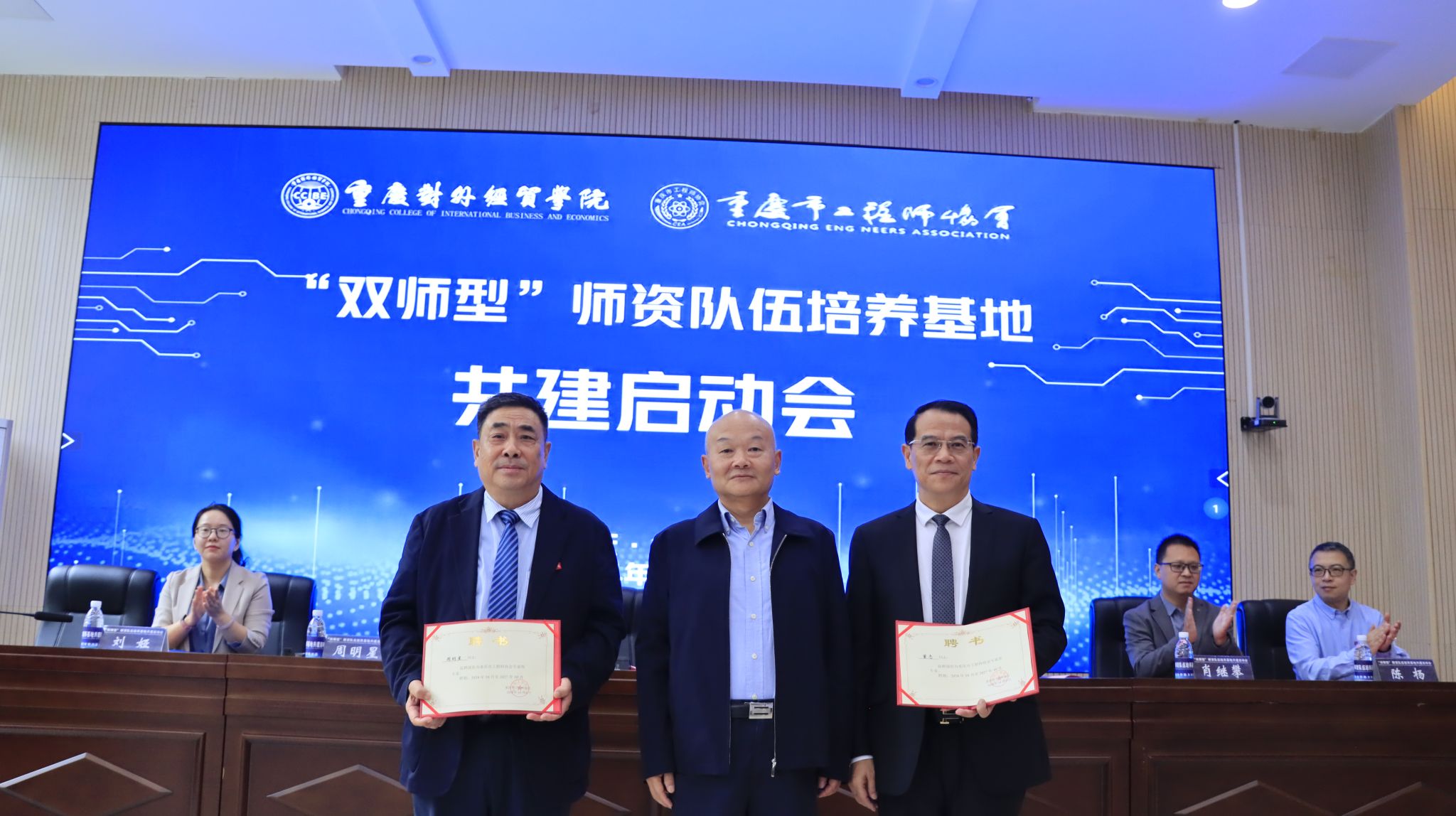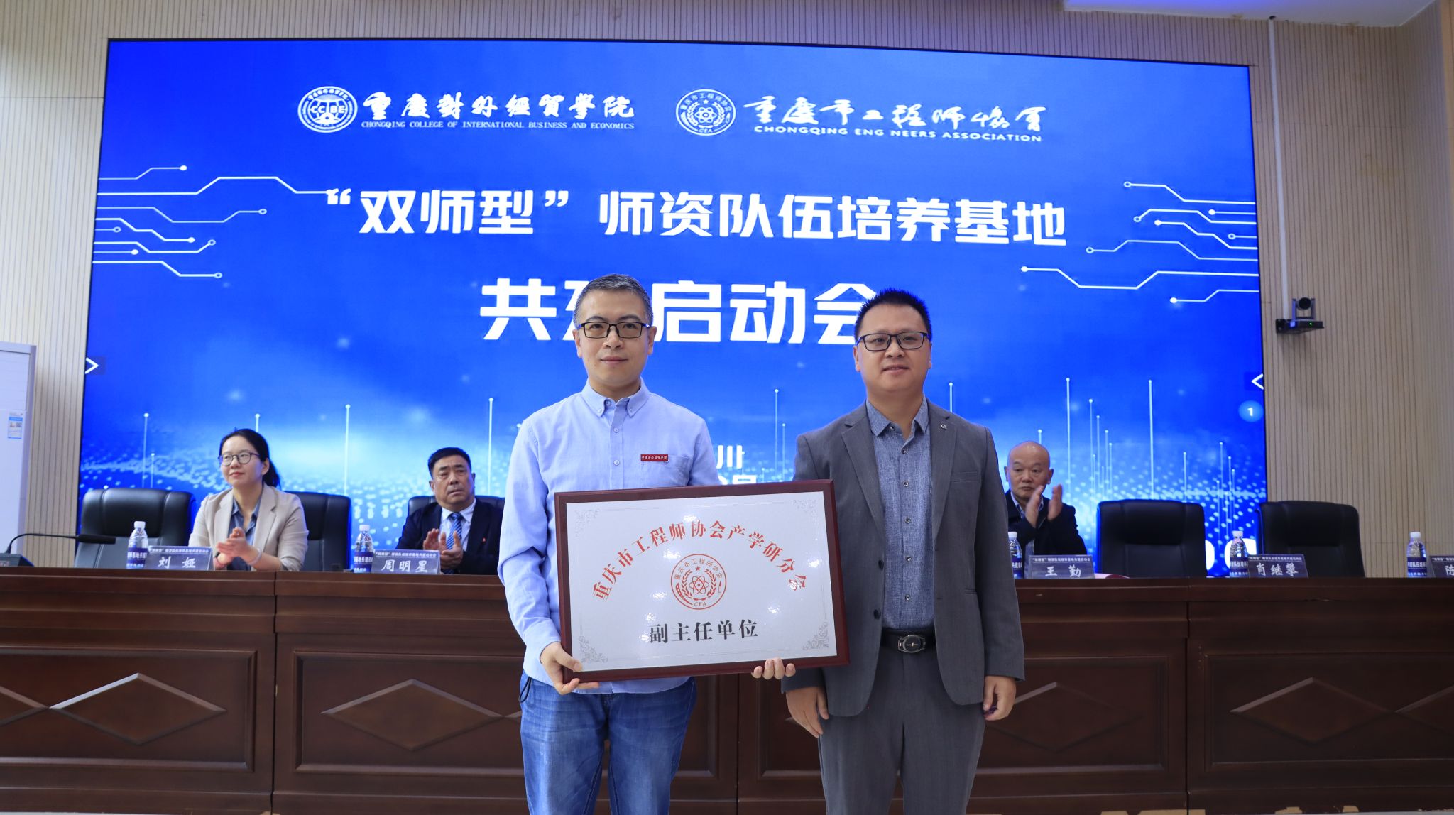 重庆市工程师协会产学研分会副主任单位的牌子也正式授予重庆对外经贸学院。