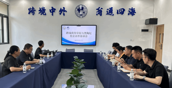 图为跨境商务学院与楠飞科技有限公司校企合作洽谈会