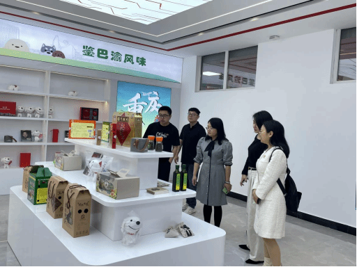 图为重庆康刻尔制药等公司代表一行参观京东数字经贸产业学院选品中心