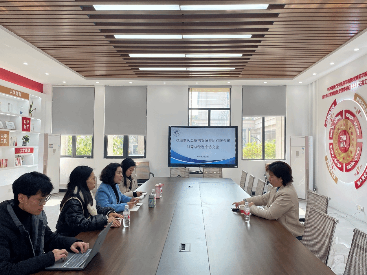 【本网讯】2月27日,重庆金柏鸿贸易集团有限公司总经理刘菁到我校开展交流座谈,跨境商务学院院长赵逖、学校国际处相关负责人以及国贸专业相关教师参与座谈会。