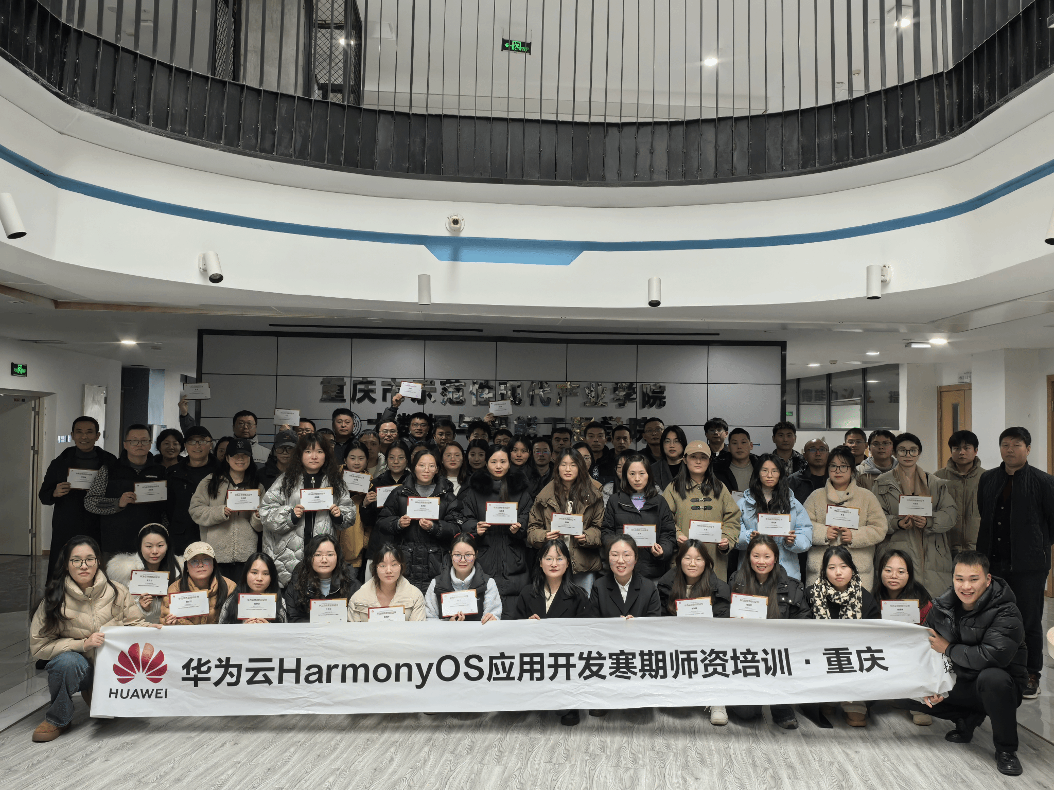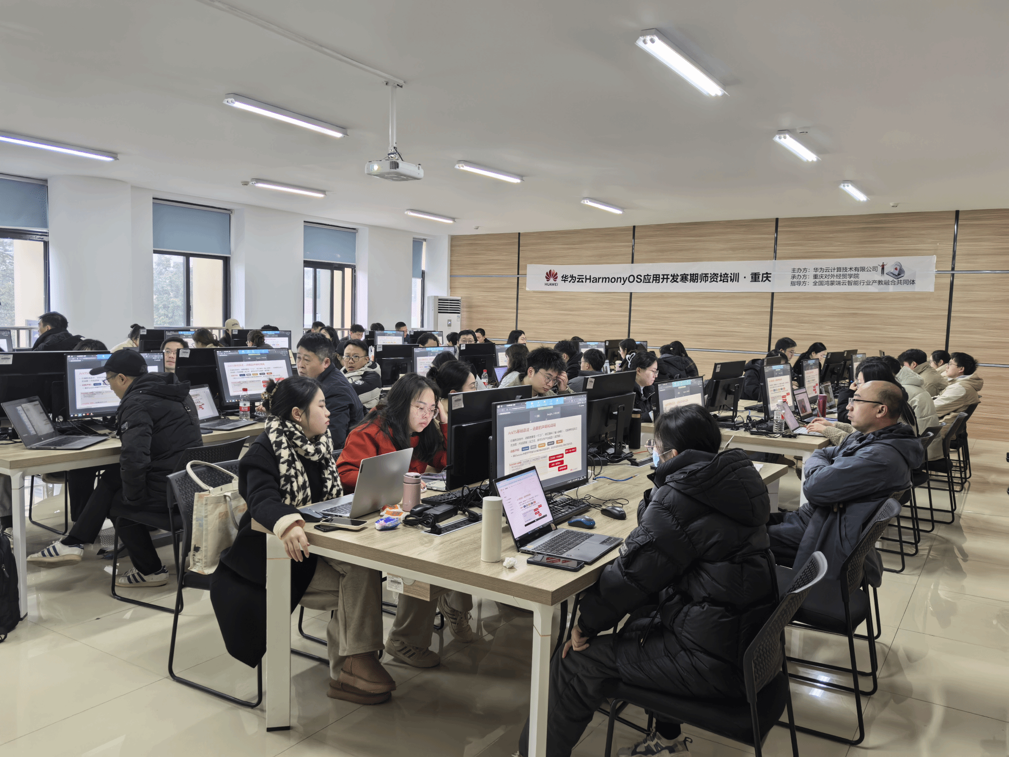 2月17日至19日,由华为云计算技术有限公司主办,重庆对外经贸学院大数据与智能工程学院承办的为期3天的“华为云HarmonyOS应用开发寒期师资培训 · 重庆站”在学校9410鸿蒙开发实验室圆满落下帷幕。本次培训吸引了来自重庆邮电大学、西南交通大学等高校的62名教师参与,共同探索HarmonyOS应用开发的新技术与新趋势。