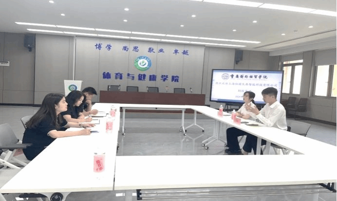 为进一步加强校企合作,推动实习就业一体化,推进我院毕业生就业工作,6月12日上海灿耀天昂智能科技有限公司副总张超、人事部经理王莉霞与体育与健康学院副院长贾勇、团总支书记刘云超、辅导员刘春艳、龚佑铮、何江梅、隆海琴在B7112开展校企合作交流会。