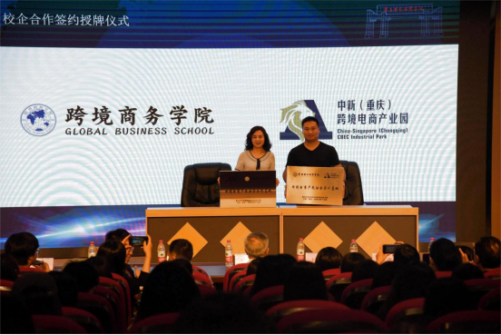为积极响应国家关于“产教融合、校企合作”的决策部署,贯彻落实我校“内涵发展、产教融合、服务地方、形成特色”的办学理念,重庆对外经贸学院跨境商务学院与中新(重庆)跨境电商产业园签约授牌仪式于2023年6月9日14点30分在我校合川B校区1115报告厅隆重举行。重庆对外经贸学院副校长蒋满元,学生处处长伍祥伦,跨境商务学院院长赵逖,跨境商务学院党总支书记任伟,跨境商务学院副院长李艳以及中新(重庆)跨境电商产业园项目总经理王利刚,项目教学主管尹归强,项目教务主管王丹丽等领导嘉宾莅临本次活动现场。