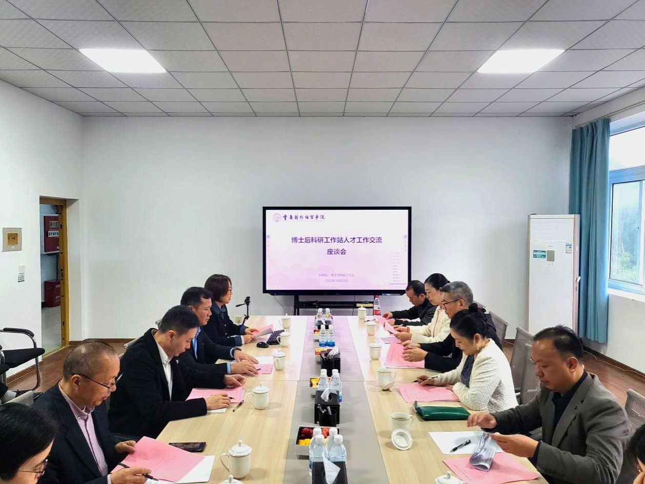 2025年10月29日,博士后科研工作站人才工作交流座谈会在重庆对外经贸学院A校区第二教学楼2504会议室顺利召开。区政协副主席周福春及部分委员,区委组织部、区人力社保局相关负责人,重庆对外经贸学院副校长李川、科研处副处长顾晓蓓及部分博士后研究人员齐聚一堂,围绕博士后科研工作站建设、人才引育、校地协同发展等进行深入交流。