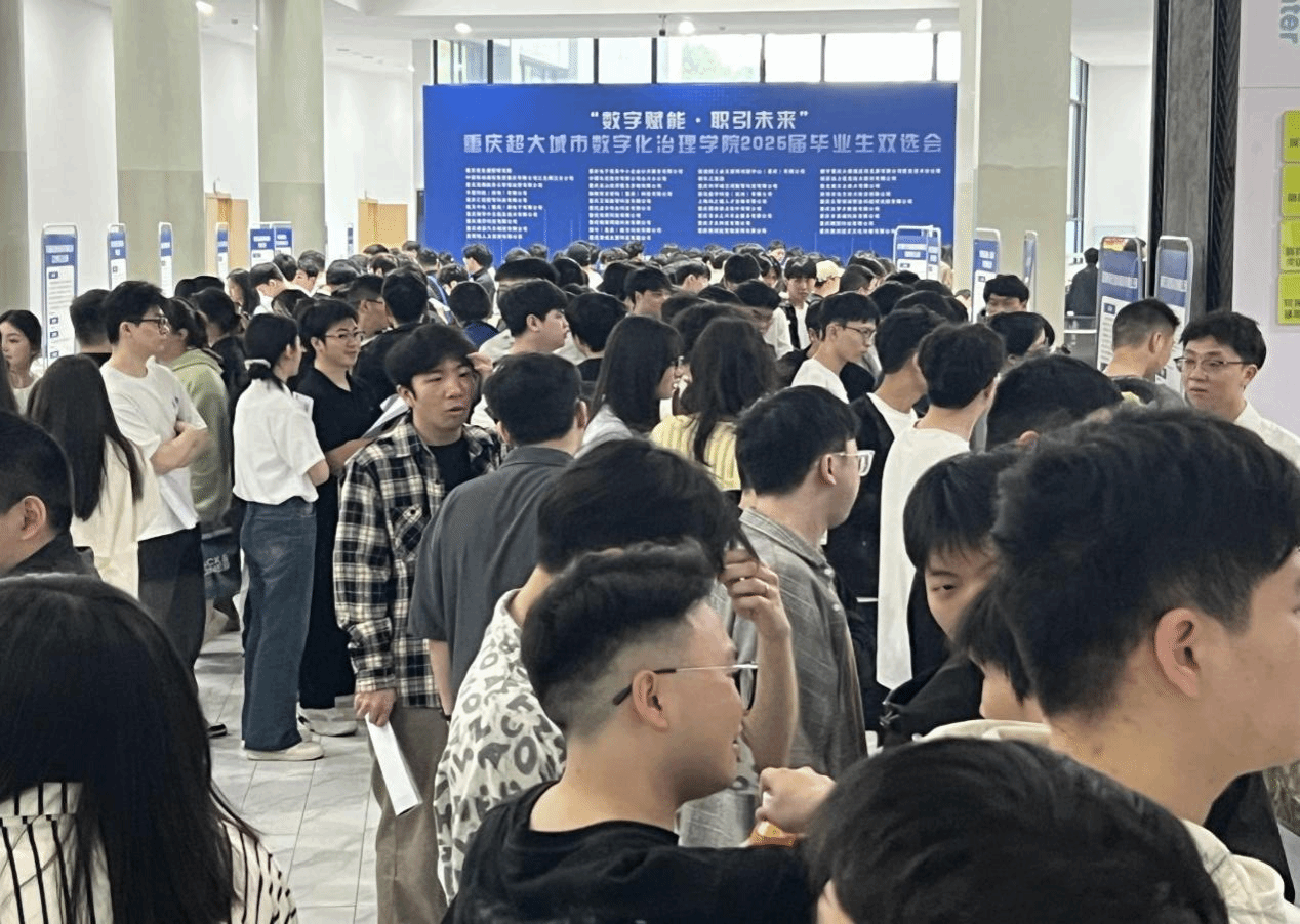 2025年4月召开首次专场双选会,37个优质行业企业提供180个对口岗位。截至2025年6月,学院培养的首批383名“懂技术+通治理”复合型“数字尖兵”顺利毕业,90.86%实现就业(含7人读研深造),其中83.5%对口就业,数十名同学入职数字重庆公司、巫山投资集团等国企,实现高质量就业。