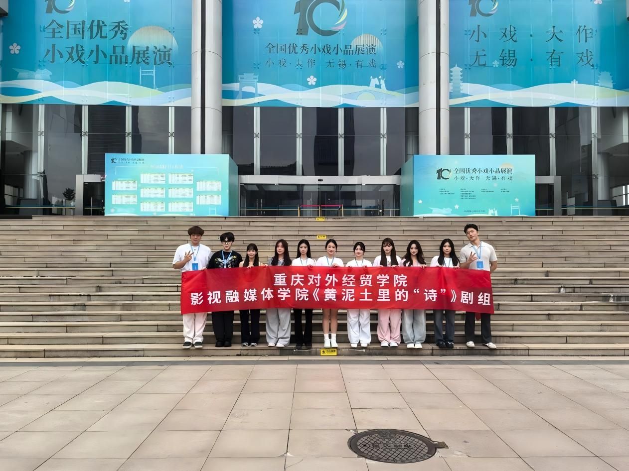 【本网讯】近日,由中国戏剧家协会主办的第十届“全国优秀小戏小品展演”在江苏无锡举行。我校影视融媒体学院表演专业教师杨悦君、赵桓带队,携原创话剧小戏《黄泥土里的“诗”》登台亮相,实现了我校在全国性戏剧展演舞台上“零的突破”。该作品作为重庆市推荐的两个优秀作品之一,生动展现了我校艺术教育的丰硕成果与戏剧创作的扎实实力。