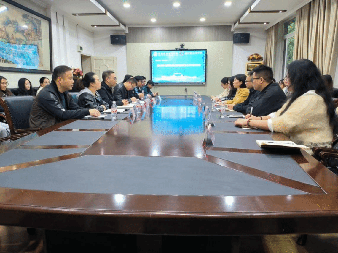 李院长对合川中学对实习生的培养表示感谢并给予高度评价,对其深化合作的意愿深表认同。她围绕学院发展定位展开介绍:外语外贸学院始终以应用型人才培养为核心,将数字赋能教学作为提质增效的重要实现路径,通过搭建虚拟仿真教学平台、开发线上实训课程等具体举措,持续深化人才培养模式改革。针对合川中学的发展需求,李院长提出合作倡议,邀请合川中学骨干教师加入学院数字教学工作坊,系统学习AI智能备课、虚拟仿真教学、多媒体课件优化等技术,学院将安排专业教师全程授课指导,同步开放自建的数字化教学资源库,其中涵盖海量优质课件、实训案例、跨文化素材等资源,为中学数字化教学转型提供坚实支撑。同时,在党建引领方面,建议双方深化党建共建合作,通过联合开展各项活动,以党建引领师德建设与育人质量协同提升。
